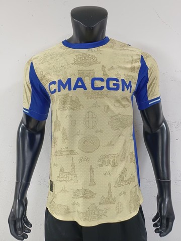 2025-26 yeni marsilya Jersey özelleştirilebilir 100% Polyester 4th kiti mevcut ekip boyun kısa kollu nefes ve hızlı kuru
